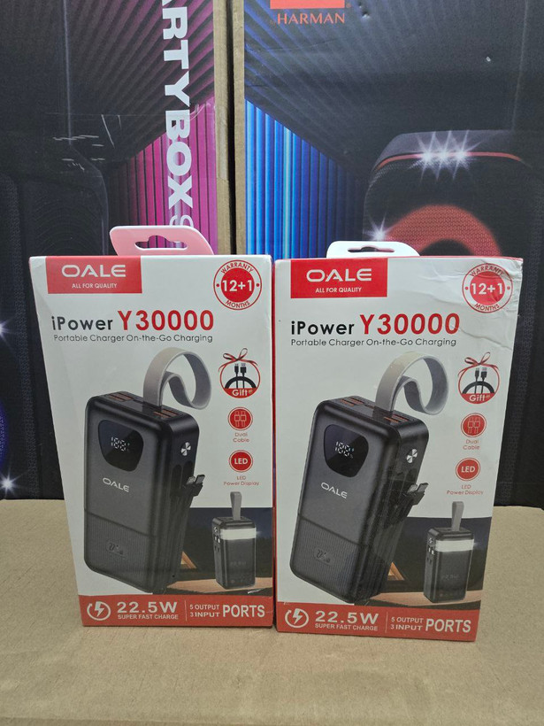 پاوربانک 30000 میلی آمپر OALE با 7 خروجی شارژ که شامل 4 خروجی فست شارژ با بیشینه 22.5 وات و همچنین 3 خروجی شارژ 10 وات معمولی یک پاور قدرتمند با توان و ظرفیت بالاست که مناسب کمپ و سفر و کوهنوردیست ، این پاور بانک 2 ورودی شارژ تایپ سی و لایتنینگ فست شارژ هم دارد و خود دستگاه هم بصورت فست 18 وات شارژ میشود ، این پاور بانک دارای چراغ قوه اضطراری ، نشانگر درصد شارژ و همچنین کیفیت ساخت بسیار بالاست